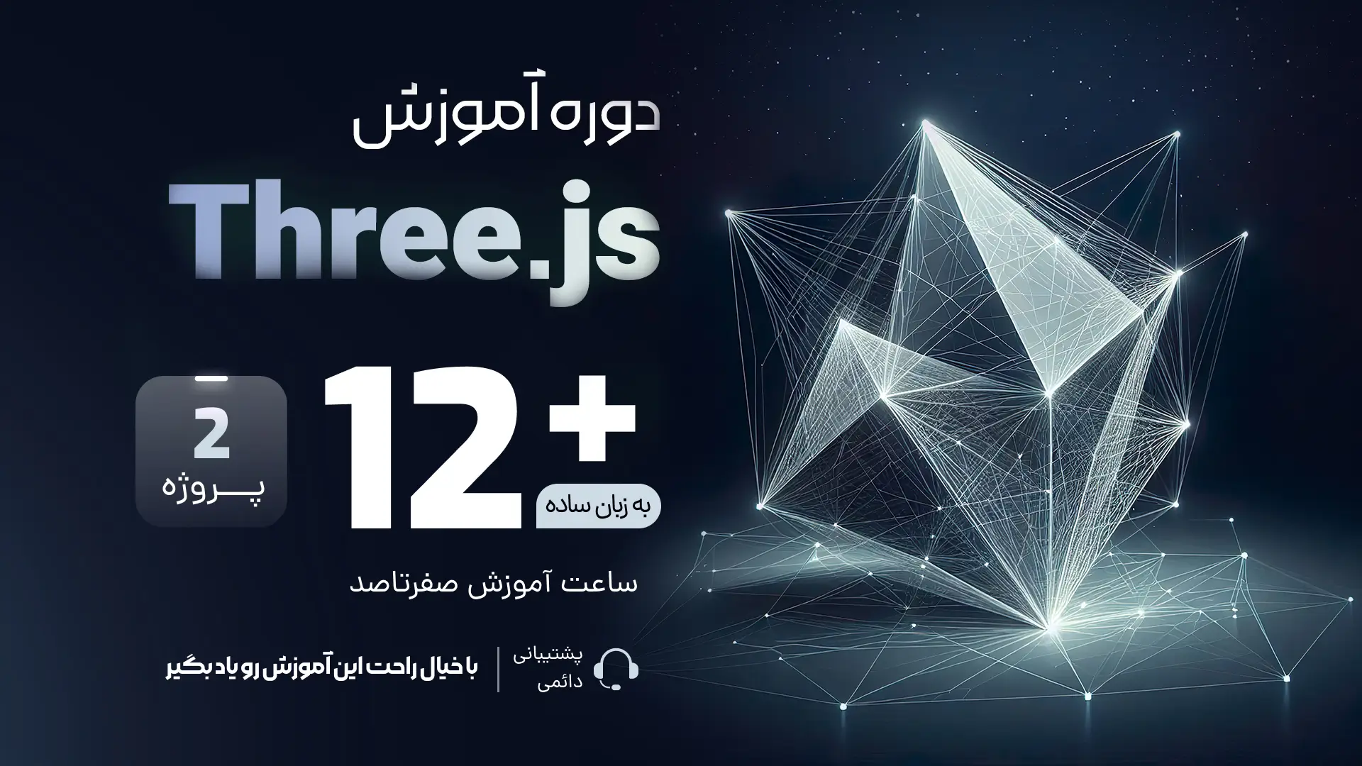 دوره آموزش Three.js به کمک برنامهنویسان آمده تا بتوانند با این ابزار کاربردی و توابع آماده، فرآیند ساخت گرافیکهای سهبعدی را سادهتر انجام دهند. با یاد گرفتن کتابخانه سه بعدی ساز جاوا اسکریپت Three.js میتوانید اشکال هندسی متنوع ایجاد کنید و سپس با حرکتگذاری، تغییر رنگ و نور تصاویر جذابی را خلق نمایید. با یادگیری نحوه کار با تری جی اس دیگر نیاز نیست زمان زیادی را برای کدنویسی با WebGL هدر دهید و کدهای پیچیده بنویسید. بهصورت کلی سرفصلهای اصلی این دوره شامل موارد زیر است:- آشنایی با Three.jsو مفاهیم پایه این کتابخانه جاوااسکریپت